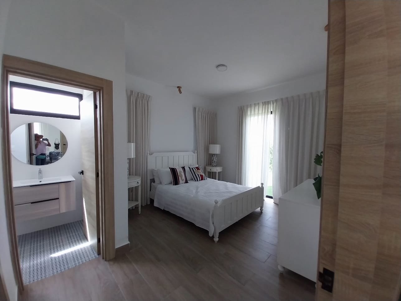 Master suite overlooking the garden with a walking closet and bathroom.