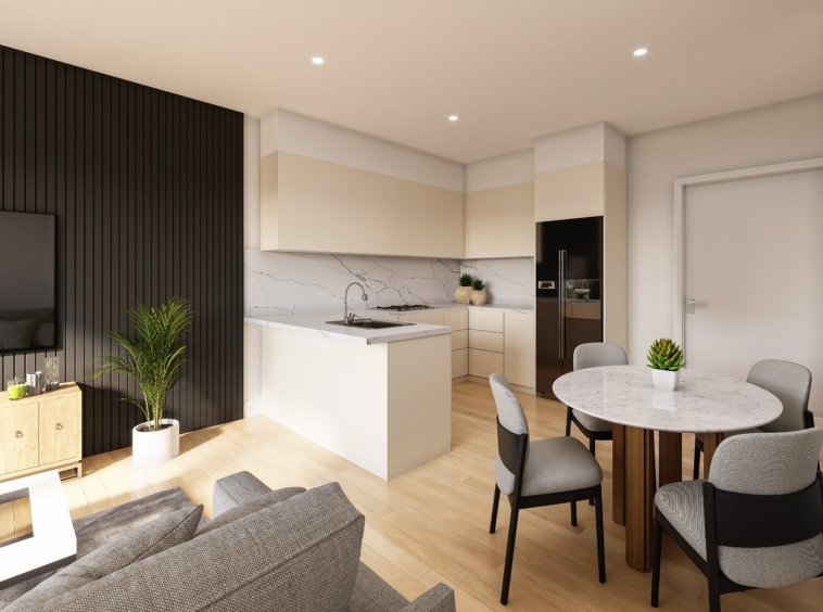 Intelligent Layout: 2 spacious bedrooms, 2 full bathrooms, a modern kitchen, and an integrated living and dining area.
