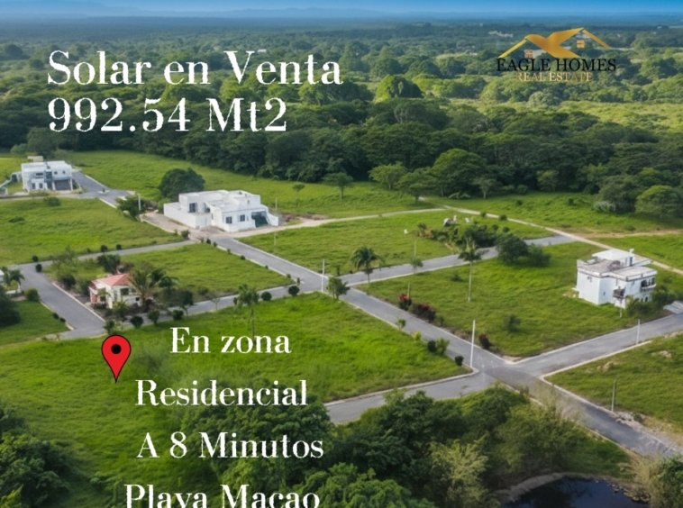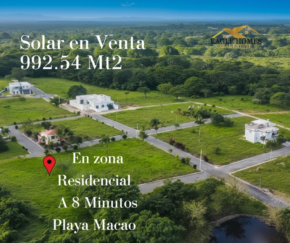 This 992.54 m² lot, located in a growing residential area in Bávaro – Macao, is only 8 minutes from Macao Beach, one of the areas with the greatest tourism potential and appreciation in the Dominican real estate market.